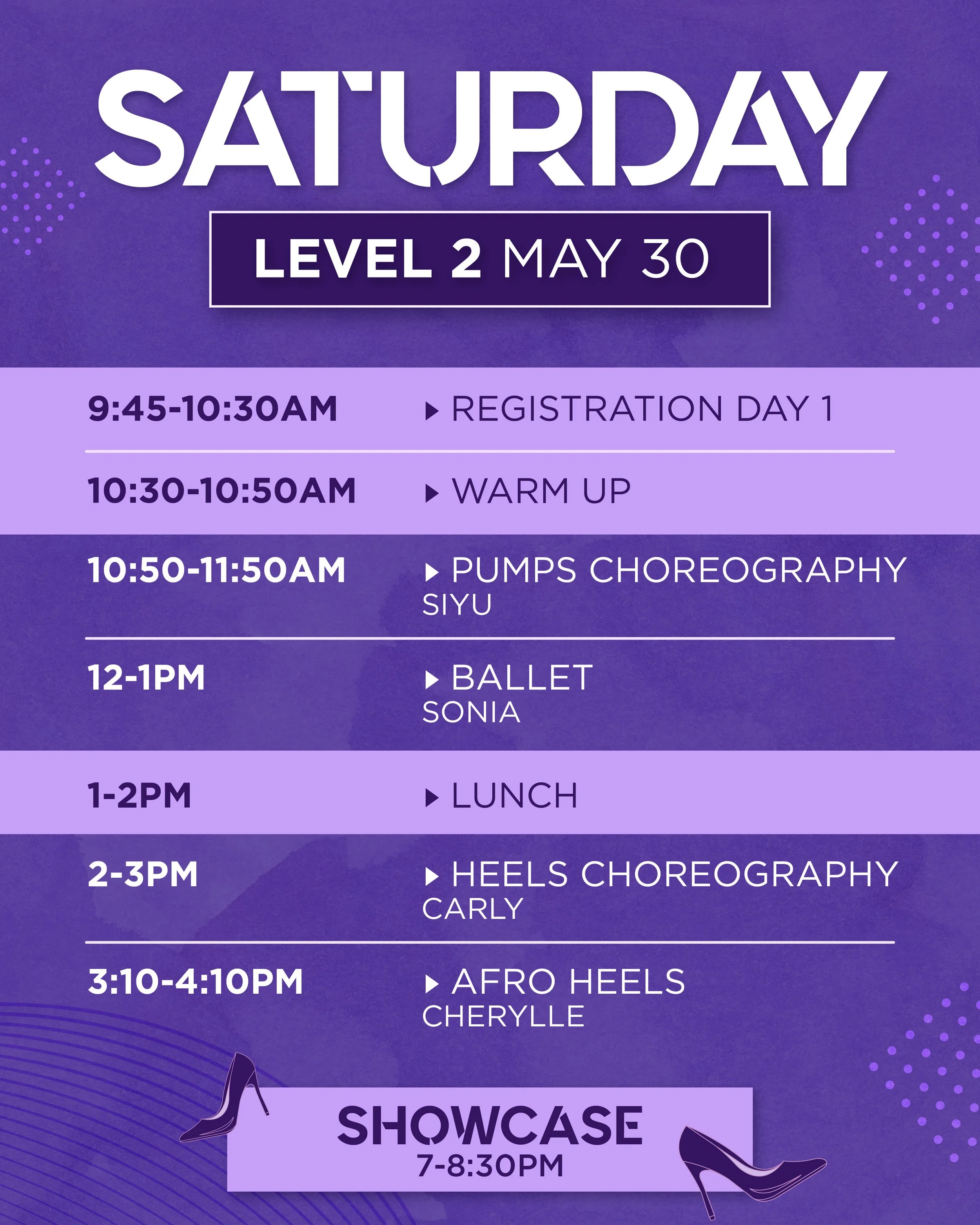 The Pump Camp Showcase will take place Saturday May 30th from 7-8:30pm at H4L Dance Complex. During the showcase, dancers will have the opportunity to present a solo, duo, small or large group number in front of a panel of experts. Each number will receive individualized feedback from the experts. This is a great way to step into a higher-pressure situation within a supportive environment. Please note ONE PERSON from each group must register for ALL MEMBERS of the duos or small to large groups. If you’re part of a duo or group, please elect one person to register ALL DANCERS under ONE NAME. You can do so by increasing the quantity of registrations to reflect the number of dancers participating at checkout.